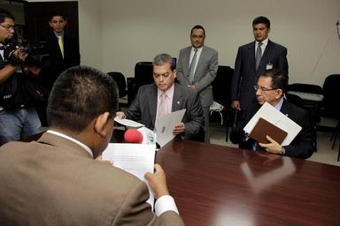| Keywords: san salvador sansalvador el salvador elsalvador indoor El secretario de comunicaciones de la Presidencia, Eugenio Chicas, y el secretario jurídico de la pesidencia, Rubén Alvarado, presentaron esta tarde ante la Fiscalía General de la República un aviso relacionado al tema de la publicación que hizo un dirigente político del itinerario de vuelo del Presidente de la República. El secretario de comunicaciones de la Presidencia, Eugenio Chicas, y el secretario jurídico de la pesidencia, Rubén Alvarado, presentaron esta tarde ante la Fiscalía General de la República un aviso relacionado al tema de la publicación que hizo un dirigente político del itinerario de vuelo del Presidente de la República. |