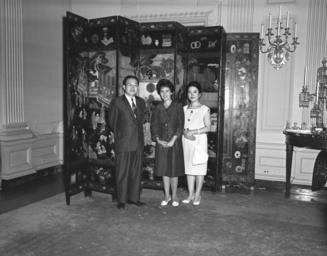 | Keywords: u.s. national archives usnationalarchives jfk presidential library jfkpresidentiallibrary blackandwhite monochrome black and white Original Caption: Presentation of Gifts for President John F. Kennedy We are looking for your help in identifying unknown people in our White House Photographs collection. If you have any information about this photograph, please post a comment, including any relevant sources, for the catalogers at the John F. Kennedy Presidential Library. Thank you! Local Identifier: JFKWHP-KN-18252 Created By: President (1961-1963 : Kennedy). Office of the Naval Aide to the President.(1961 - 1963) From: Collection JFK-WHP: White House Photographs, 12/19/1960 - 03/11/1964 Contact: John F. Kennedy Library (LP-JFK), Columbia Point Boston, MA 02125-3398 Phone: 617-514-1600 Fax: 617-514-1652 Email: kennedy.library@nara.gov Production Dates: 7/6/1961 Scope and Content Note: This is a photograph of a presentation of gifts for President John F. Kennedy. Included in this photograph are White House Curator Lorraine Waxman Pearce (center) and two unidentified visitors with a Chinese coromandel screen in background that was a gift from Anne McQuarrie Hatch, wife of L. Boyd Hatch, State Dining Room, White House, Washington, D.C. Persistent URL: JFK Library URL: www.jfklibrary.org/Asset-Viewer/Archives/JFKWHP-KN-18252.... Access Restrictions: Unrestricted Use Restrictions: Unrestricted Original Caption: Presentation of Gifts for President John F. Kennedy We are looking for your help in identifying unknown people in our White House Photographs collection. If you have any information about this photograph, please post a comment, including any relevant sources, for the catalogers at the John F. Kennedy Presidential Library. Thank you! Local Identifier: JFKWHP-KN-18252 Created By: President (1961-1963 : Kennedy). Office of the Naval Aide to the President.(1961 - 1963) From: Collection JFK-WHP: White House Photographs, 12/19/1960 - 03/11/1964 Contact: John F. Kennedy Library (LP-JFK), Columbia Point Boston, MA 02125-3398 Phone: 617-514-1600 Fax: 617-514-1652 Email: kennedy.library@nara.gov Production Dates: 7/6/1961 Scope and Content Note: This is a photograph of a presentation of gifts for President John F. Kennedy. Included in this photograph are White House Curator Lorraine Waxman Pearce (center) and two unidentified visitors with a Chinese coromandel screen in background that was a gift from Anne McQuarrie Hatch, wife of L. Boyd Hatch, State Dining Room, White House, Washington, D.C. Persistent URL: JFK Library URL: www.jfklibrary.org/Asset-Viewer/Archives/JFKWHP-KN-18252.... Access Restrictions: Unrestricted Use Restrictions: Unrestricted |