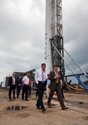 | Keywords: President Barack Obama tours SpaceX launch pad.jpg en President Barack Obama tours SpaceX launch pad with CEO Elon Musk at the Kennedy Space Center in Cape Canaveral Florida 2010-04-15 http //www nasa gov/offices/spacecoasttaskforce/home/index html Official White House Photo by Chuck Kennedy PD-USGov Uploaded with UploadWizard Elon Musk Barack Obama in 2010 20100415 Cape Canaveral Air Force Station Space Launch Complex 40 Personality rights | ||||