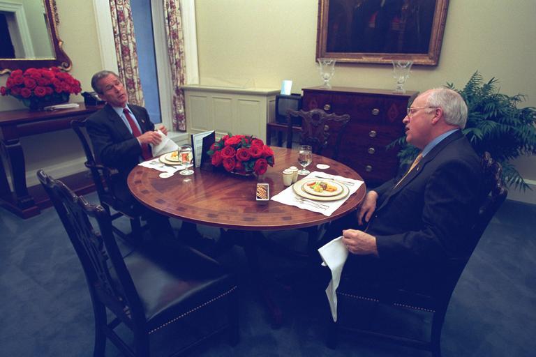 View Original:President_Bush_and_Vice_President_Cheney_Have_Lunch_in_Private_Dining_Room.jpg (3072x2048)