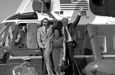 | Keywords: President Ford, Senator Robert Dole and Mrs. Elizabeth Dole - NARA - 7027917.jpg President Gerald Ford Vice Presidential running mate Senator Robert Dole and Mrs Elizabeth Dole debark Marine I to attend a Campaign Rally in the Senator ™s hometown Russell Kansas 7027917 Creator William Fitz-Patrick Gerald R Ford Presidential Library http //www fordlibrarymuseum gov/avproj/campaign asp B1259-05 Institution Gerald R Ford Presidential Library 1976-08-20 Gerald R Ford Presidential Library and Museum-cooperation PD-USGov Uploaded with UploadWizard 1976 Campaign photo kit at the Gerald R Ford Presidential Library Bob Dole Gerald Ford in 1976 Elizabeth Dole People and Marine One Gerald Ford presidential campaign 1976 Russell Kansas 1976 in Kansas Photographs by William Fitz-Patrick |