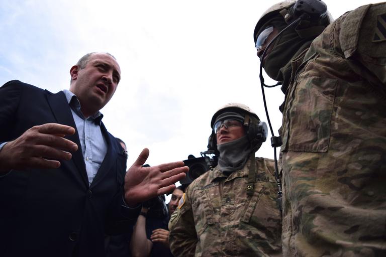 | Keywords: nato nato response force natoresponseforce europe usareur u.s. army usarmy 1st armored brigade combat team 1starmoredbrigadecombatteam 3id 3rd infantry division 3rdinfantrydivision raidersfirst outdoor Giorgi Margvelashvili, president of Georgia, ask, talks with soldiers from A Company 1st Battalion, 64th Armor Regiment about the M1A2 Abrams Main Battle Tank as part of opening ceremony of Exercise Noble Partner May 11, 2016 at Vaziani Training Area. Exercise Noble Partner 16 is a Georgian and U.S. military training exercise taking place at Vaziani Training Area, Georgia, May 11 to 26, 2016. This exercise is a critical part of Georgia’s training for its contribution of a light infantry company to the NATO Response Force (NRF) and enhances Georgian territorial self-defense capability.( Photos By Spc. Ryan Tatum, 1st Armored Brigade Combat Team Public Affairs) Giorgi Margvelashvili, president of Georgia, ask, talks with soldiers from A Company 1st Battalion, 64th Armor Regiment about the M1A2 Abrams Main Battle Tank as part of opening ceremony of Exercise Noble Partner May 11, 2016 at Vaziani Training Area. Exercise Noble Partner 16 is a Georgian and U.S. military training exercise taking place at Vaziani Training Area, Georgia, May 11 to 26, 2016. This exercise is a critical part of Georgia’s training for its contribution of a light infantry company to the NATO Response Force (NRF) and enhances Georgian territorial self-defense capability.( Photos By Spc. Ryan Tatum, 1st Armored Brigade Combat Team Public Affairs) |
