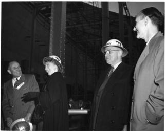 | Keywords: nara:arcid=6233772 u.s. national archives usnationalarchives harry s. truman library harrystrumanlibrary hungy horse dam hungyhorsedam presidential visit presidentialvisit hard hats hardhats dam construction damconstruction workers margaret truman margarettruman blackandwhite monochrome black and white Original Caption: President Harry S. Truman Visits Hungry Horse Dam, 10/01/1952 Created By: National Archives and Records Administration. Office of Presidential Libraries. Harry S. Truman Library. (04/01/1985 - ) From: Series: Photographs Relating to the Administration, Family, and Personal Life of Harry S. Truman, compiled 1957 - 2004, documenting the period 1849 - 2004 Contact: Harry S. Truman Library (NLHST), 500 West U.S. Highway 24, Independence, MO, 64050-1798. PHONE: 816-268-8272; FAX: 816-268-8295; EMAIL:truman.reference@nara.gov. Production Dates: 10/01/1952 Scope and Content Note: Caption: Left to right: C. H. Spencer, Hungry Horse Dam construction engineer; Margaret Truman; President Harry S. Truman; and Congressman Mike Mansfield at the Hungry Horse Dam project outside Kalispell, Montana during a stop on President Truman's Western campaign trip. Persistent URL: arcweb.archives.gov/arc/action/ExternalIdSearch?id=6233772 Truman Library URL: www.trumanlibrary.org/photographs/view.php?id=42577&rr= Access Restrictions: Unrestricted Use Restrictions: Unrestricted Original Caption: President Harry S. Truman Visits Hungry Horse Dam, 10/01/1952 Created By: National Archives and Records Administration. Office of Presidential Libraries. Harry S. Truman Library. (04/01/1985 - ) From: Series: Photographs Relating to the Administration, Family, and Personal Life of Harry S. Truman, compiled 1957 - 2004, documenting the period 1849 - 2004 Contact: Harry S. Truman Library (NLHST), 500 West U.S. Highway 24, Independence, MO, 64050-1798. PHONE: 816-268-8272; FAX: 816-268-8295; EMAIL:truman.reference@nara.gov. Production Dates: 10/01/1952 Scope and Content Note: Caption: Left to right: C. H. Spencer, Hungry Horse Dam construction engineer; Margaret Truman; President Harry S. Truman; and Congressman Mike Mansfield at the Hungry Horse Dam project outside Kalispell, Montana during a stop on President Truman's Western campaign trip. Persistent URL: arcweb.archives.gov/arc/action/ExternalIdSearch?id=6233772 Truman Library URL: www.trumanlibrary.org/photographs/view.php?id=42577&rr= Access Restrictions: Unrestricted Use Restrictions: Unrestricted |