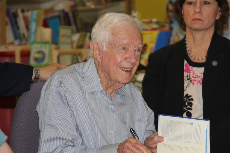 | Keywords: President Jimmy Carter at Quail Ridge Books-Raleigh NC-jmturner-2014-04-02.jpeg en Former American President Jimmy Carter signs books at Quail Ridge Books in Raleigh NC on April 2nd 2014 2014-04-02 12 51 36 own Mark Turner 35 802390 -78 685498 cc-zero Uploaded with UploadWizard Jimmy Carter |