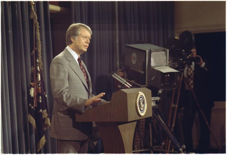 | Keywords: President Jimmy Carter, first press conference - NARA - 173605.tif Scope and content General notes 173605 Local identifier President 1977-1981 Carter White House Staff Photographers 01/20/1977 - 01/20/1981 Jimmy Carter Library NLJC 441 Freedom Parkway Atlanta GA 30307-1498 1977-02-08 Record group Collection JC-WHSP Carter White House Photographs Collection 01/20/1977 - 01/22/1981 Record group ARC 1120 Carter White House Photographs Presidential compiled 01/20/1977 - 01/22/1981 Series ARC 173341 File unit First Press Conference 02/08/1977 - 02/08/1977 File unit ARC 173604 Variant control numbers NAIL Control Number NLC-WHSP-C-00248-8 yes Other versions NARA-cooperation PD-USGov Press conferences in the White House Jimmy Carter |
