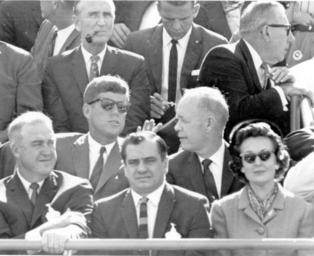 | Keywords: florida state library and archives of florida statelibraryandarchivesofflorida orange bowl orangebowl football miami president kennedy governor bryant new year's day newyearsday winter holidays blackandwhite people monochrome groupshot florida state library and archives of florida statelibraryandarchivesofflorida presidents--united states presidentsunitedstates john f. kennedy johnfkennedy orange bowl orangebowl college football collegefootball miami dade county dadecounty stadiums bowl games bowlgames reference collection referencecollection alabama crimson tide (football team) alabamacrimsontidefootballteam oklahoma sooners (football team) oklahomasoonersfootballteam new year's day newyearsday president john f. kennedy presidentjohnfkennedy john fitzgerald kennedy johnfitzgeraldkennedy john fitzgerald ''jack'' kennedy johnfitzgeraldjackkennedy jfk governor farris bryant governorfarrisbryant farris bryant farrisbryant c. farris bryant cfarrisbryant cecil farris bryant cecilfarrisbryant mrs. farris bryant mrsfarrisbryant mrs. julia bryant mrsjuliabryant julia burnett bryant juliaburnettbryant u. s. senator mike mansfield ussenatormikemansfield mike mansfield mikemansfield u.s. representative claude pepper usrepresentativeclaudepepper claude pepper claudepepper claude denson pepper claudedensonpepper u.s. ambassador edward grant stockdale usambassadoredwardgrantstockdale edward grant stockdale edwardgrantstockdale grant stockdale grantstockdale u.s. congressman dante fascell uscongressmandantefascell dante fascell dantefascell dante bruno fascell dantebrunofascell united states presidents unitedstatespresidents united states senators unitedstatessenators u.s. senate majority leaders ussenatemajorityleaders u.s. house of representatives ushouseofrepresentatives united states representatives unitedstatesrepresentatives united states congress unitedstatescongress members of congress membersofcongress u.s. ambassadors usambassadors united states governors unitedstatesgovernors governors florida governors floridagovernors ireland pipes people groupshot blackandwhite monochrome black and white Local call number: RC09187 Title: John F. Kennedy at the Orange Bowl Date: January 1, 1963 Physical descrip: 1 photonegative: b&w; 8 x 10 in. Series Title: Print Collections General Note: Around the President are, front row (left to right): Grant Stockdale, of Miami, U.S. Ambassador to Ireland; Congressman Dante B. Fascell; Mrs. Farris Bryant. Center: President John F. Kennedy and Governor Farris Bryant. Directly behind the President with pipe is U.S. Senator Mike Mansfield of Montana and behind Governor Bryant is Congressman Claude Pepper in profile. Repository: State Library and Archives of Florida, 500 S. Bronough St., Tallahassee, FL 32399-0250 USA. Contact: 850.245.6700. Archives@dos.state.fl.us Persistent URL: www.floridamemory.com/items/show/32037 Local call number: RC09187 Title: John F. Kennedy at the Orange Bowl Date: January 1, 1963 Physical descrip: 1 photonegative: b&w; 8 x 10 in. Series Title: Print Collections General Note: Around the President are, front row (left to right): Grant Stockdale, of Miami, U.S. Ambassador to Ireland; Congressman Dante B. Fascell; Mrs. Farris Bryant. Center: President John F. Kennedy and Governor Farris Bryant. Directly behind the President with pipe is U.S. Senator Mike Mansfield of Montana and behind Governor Bryant is Congressman Claude Pepper in profile. Repository: State Library and Archives of Florida, 500 S. Bronough St., Tallahassee, FL 32399-0250 USA. Contact: 850.245.6700. Archives@dos.state.fl.us Persistent URL: www.floridamemory.com/items/show/32037 Local call number: RC09187 Title: President John F. Kennedy enjoying the Orange Bowl game: Miami, Florida Date: January 1, 1963 General note: Alabama beat Oklahoma 17-0. Physical descrip: 1 photoprint - b&w - 8 x 10 in. Series Title: Reference Collection Repository: State Library and Archives of Florida, 500 S. Bronough St., Tallahassee, FL 32399-0250 USA. Contact: 850.245.6700. Archives@dos.myflorida.com Persistent URL: floridamemory.com/items/show/32037 Local call number: RC09187 Title: President John F. Kennedy enjoying the Orange Bowl game: Miami, Florida Date: January 1, 1963 General note: Alabama beat Oklahoma 17-0. Physical descrip: 1 photoprint - b&w - 8 x 10 in. Series Title: Reference Collection Repository: State Library and Archives of Florida, 500 S. Bronough St., Tallahassee, FL 32399-0250 USA. Contact: 850.245.6700. Archives@dos.myflorida.com Persistent URL: floridamemory.com/items/show/32037 |