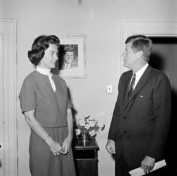 | Keywords: u.s. national archives usnationalarchives jfk presidential library jfkpresidentiallibrary blackandwhite people monochrome suit black and white Original Caption: President John F. Kennedy with a Former White House Staff Member We are looking for your help in identifying unknown people in our White House Photographs collection. If you have any information about this photograph, please post a comment, including any relevant sources, for the catalogers at the John F. Kennedy Presidential Library. Thank you! Local Identifier: JFKWHP-KN-19269 Created By: President (1961-1963 : Kennedy). Office of the Naval Aide to the President. (1961 - 1963) From: Robert Knudsen White House Photographs, 01/20/1961 - 12/19/1963 Contact: John F. Kennedy Library (LP-JFK), Columbia Point Boston, MA 02125-3398 Phone: 617-514-1600 Fax: 617-514-1652 Email: kennedy.library@nara.gov Production Dates: 10/27/1961 Scope and Content Note: In this photograph President John F. Kennedy meets with a former White House staff member (left). White House, Washington, D.C. Persistent URL: JFK Library URL: www.jfklibrary.org/Asset-Viewer/Archives/JFKWHP-KN-19269.... Access Restrictions: Unrestricted Use Restrictions: Unrestricted Original Caption: President John F. Kennedy with a Former White House Staff Member We are looking for your help in identifying unknown people in our White House Photographs collection. If you have any information about this photograph, please post a comment, including any relevant sources, for the catalogers at the John F. Kennedy Presidential Library. Thank you! Local Identifier: JFKWHP-KN-19269 Created By: President (1961-1963 : Kennedy). Office of the Naval Aide to the President. (1961 - 1963) From: Robert Knudsen White House Photographs, 01/20/1961 - 12/19/1963 Contact: John F. Kennedy Library (LP-JFK), Columbia Point Boston, MA 02125-3398 Phone: 617-514-1600 Fax: 617-514-1652 Email: kennedy.library@nara.gov Production Dates: 10/27/1961 Scope and Content Note: In this photograph President John F. Kennedy meets with a former White House staff member (left). White House, Washington, D.C. Persistent URL: JFK Library URL: www.jfklibrary.org/Asset-Viewer/Archives/JFKWHP-KN-19269.... Access Restrictions: Unrestricted Use Restrictions: Unrestricted |