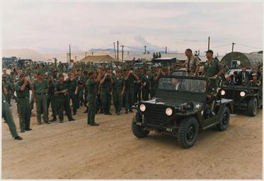 | Keywords: President Lyndon B. Johnson in Vietnam, With General William Westmoreland and the fighting men - NARA - 192510.tif Scope and content Location Cam Ranh Bay Vietnam Depicted President Lyndon B Johnson General William Westmoreland General notes 192510 Local identifier President 1963-1969 Johnson White House Photograph Office 1963 - 1969 Creator Yoichi Okamoto Lyndon Baines Johnson Library NLLBJ 2313 Red River Street Austin TX 78705-5702 1966-10-26 Record group Collection LBJ-WHPO White House Photo Office Collection 11/22/1963 - 01/20/1969 Record group ARC 1153 Johnson White House Photographs compiled 11/22/1963 - 01/20/1969 Series ARC 192480 File unit File unit ARC Variant control numbers NAIL Control Number NLJ-WHPO-A-VN030<br /> Other Identifier C3602-37 yes Other versions NARA-cooperation PD-USGov William Westmoreland Lyndon B Johnson in 1966 1026 Cam Ranh Photographs by Yoichi Okamoto |