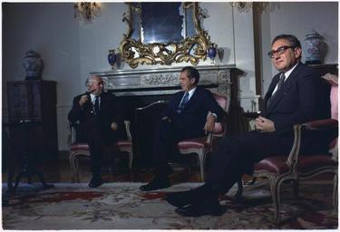 | Keywords: President Nixon meets with British Prime Minister Harold P. Wilson at the U.S. embassy residence in Brussels, Belgium - NARA - 194589.tif Scope and content Pictured Harold P Wilson Richard M Nixon Henry A Kissinger Subject Heads of State - Great Britain General notes 194589 Local identifier NLRN-WHPO-E3158C-28A General Services Administration National Archives and Records Service Office of Presidential Libraries Office of Presidential Papers 01/20/1969 - ca 12/1974 Most Recent <br /> President 1969-1974 Nixon White House Photo Office 1969 - 1974 Most Recent NARA-Author Knudsen Robert L Robert LeRoy 1929-1989 Photographer 8451337 <br /> Richard Nixon Library NLRN 18001 Yorba Linda Boulevard Yorba Linda CA 92886 1974-06-26 Record group Collection RN-WHPO White House Photo Office Collection Nixon Administration 01/20/1969 - 08/09/1974 Record group ARC 1179 Nixon White House Photographs compiled 01/20/1969 - 08/09/1974 documenting the period 08/08/1968 - 08/09/1974 Series ARC 194277 File unit File unit ARC Variant control numbers NAIL Control Number NLNP-WHPO-MPF-E3158C 28A yes Other versions NARA-cooperation PD-USGov Harold Wilson Embassy of the United States in Brussels June 1974 in Europe Richard Nixon in 1974 Richard Nixon with national leaders Henry Kissinger Presidents of the United States and the Prime Ministers of the United Kingdom |