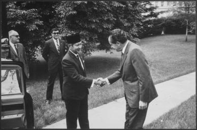 | Keywords: President Nixon and Prime Minister Suharto of Indonesia - NARA - 194678.tif Scope and content Pictured Prime Minister Suharto President Nixon Subject Heads of State - S E Asia General notes 194678 Local identifier NLRN-WHPO-3569-02A General Services Administration National Archives and Records Service Office of Presidential Libraries Office of Presidential Papers 01/20/1969 - ca 12/1974 Most Recent <br /> President 1969-1974 Nixon White House Photo Office 1969 - 1974 Most Recent NARA-Author Atkins Oliver F 1916-1977 Photographer 8451334 <br /> Richard Nixon Library NLRN 18001 Yorba Linda Boulevard Yorba Linda CA 92886 1970-05-26 Record group Collection RN-WHPO White House Photo Office Collection Nixon Administration 01/20/1969 - 08/09/1974 Record group ARC 1179 Nixon White House Photographs compiled 01/20/1969 - 08/09/1974 documenting the period 08/08/1968 - 08/09/1974 Series ARC 194277 File unit File unit ARC Variant control numbers NAIL Control Number NLNP-WHPO-MPF-3569 02A yes Other versions NARA-cooperation PD-USGov Photographs by Ollie Atkins |