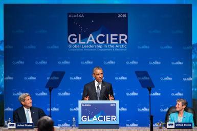 | Keywords: alaska glacier glaciers obama potus climate climate change climatechange Flanked by U.S. Secretary of State John Kerry and U.S. Secretary of the Interior Sally Jewell, President Barack Obama delivers remarks at the concluding session of the Conference on Global Leadership in the Arctic: Cooperation, Innovation, Engagement and Resilience (GLACIER) in Anchorage, Alaska, on August 31, 2015. [State Department photo/ Public Domain] Read the transcript. Flanked by U.S. Secretary of State John Kerry and U.S. Secretary of the Interior Sally Jewell, President Barack Obama delivers remarks at the concluding session of the Conference on Global Leadership in the Arctic: Cooperation, Innovation, Engagement and Resilience (GLACIER) in Anchorage, Alaska, on August 31, 2015. [State Department photo/ Public Domain] Read the transcript. |