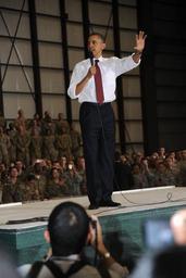 | Keywords: President Obama's visit to Afghanistan 120502-N-XC874-055.jpg en President Barack Obama addresses the soldiers sailors airmen and Marines of Bagram Air Field Parwan province Afghanistan May 2 The president visited Afghanistan to sign a historic agreement with Afghan President Hamid Karzai setting the path for the eventual withdrawal of U S forces and increased self-governance by the recognized government of the Islamic Republic of Afghanistan 2012-05-02 https //www dvidshub net/image/570307 120502-N-XC874-055 2012-05-02 02 14 BAGRAM AIR FIELD AF PD-USGov-Military-Navy Barack Obama in 2012 Hamid Karzai Bagram Air Base Images from DoD uploaded by Fæ |