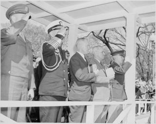 | Keywords: President Truman attends the Army Day parade in Washington, D. C. He is on the reviewing stand, second from the... - NARA - 199619.tif Scope and content General notes 199619 Local identifier National Archives and Records Administration Office of Presidential Libraries Harry S Truman Library 04/01/1985 - NARA-Author Rowe Abbie 1905-1967 Photographer 8451352 <br /> Harry S Truman Library NLHST 500 West U S Highway 24 Independence MO 64050-1798 1947-04-07 Record group Collection HST-AVC Audiovisual Collection 1957 - 2006 Record group ARC 1207 Photographs Relating to the Administration Family and Personal Life of Harry S Truman compiled 1957 - 2004 documenting the period 1849 - 2004 Series ARC 198606 File unit File unit ARC Variant control numbers NAIL Control Number NLT-AVC-PHT-73 2464 yes Other versions <gallery> File President_Truman_attends_the_Army_Day_parade_in_Washington _D _C _He_is_on_the_reviewing_stand _second_from_the _-_NARA_-_199619 tif tif File President_Truman_attends_the_Army_Day_parade_in_Washington _D _C _He_is_on_the_reviewing_stand _second_from_the _-_NARA_-_199619 jpg jpg </gallery> NARA-cooperation PD-USGov Photographs by Abbie Rowe Black and white photographs NARA TIF images with categorized JPGs |