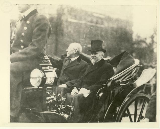 | Keywords: president wilson paris peace conference france raymond poincare parade monochrome Local Accession Number: 181 Description: Wilson and President Poincare on parade in Paris, France. Wilson became the first president to leave the United States while in office when he traveled to France in December, 1918. Photographer: Unknown Source: Research Library, 20th Century Fox Size: 8x10 Medium: Print, Black and White Date: 1918 Local Accession Number: 181 Description: Wilson and President Poincare on parade in Paris, France. Wilson became the first president to leave the United States while in office when he traveled to France in December, 1918. Photographer: Unknown Source: Research Library, 20th Century Fox Size: 8x10 Medium: Print, Black and White Date: 1918 |