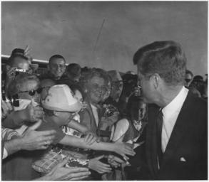 | Keywords: Presidential party at the park - NARA - 286008.tif Scope and content Pictures of Kennedy in a group of tourists; Kennedy Udall and McGee shaking hands; Udall observing a crowd; Kennedy and Udall squinting into the sun at the foot of the airplane stairs General notes 286008 Local identifier Department of the Interior National Park Service Midwest Region 06/1962 - NARA's Central Plains Region Kansas City NREA 400 West Pershing Road Kansas City MO 64108 1963 Record group Record Group 79 Records of the National Park Service 1785 - 2006 Record group ARC 408 General Files compiled 1951 - 1964 Series ARC 285987 File unit File unit ARC Variant control numbers NAIL Control Number NRE-79-MR GF -1267 yes Other versions <gallery> File Presidential_party_at_the_park_-_NARA_-_286008 tif tif File Presidential_party_at_the_park_-_NARA_-_286008 jpg jpg </gallery> NARA-cooperation PD-USGov NARA TIF images with categorized JPGs John F Kennedy in 1963 |