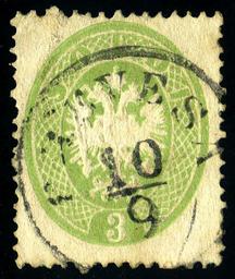 | Keywords: Prevesa Austrian 1 03 sld 1863.jpg Lombardy and Venice for usage by Austrian Post Offices in the Levant 3 soldi green used in the Post Office of Preveza Extremely rare Catalogue Sc 16 Mi V 15 green Type of cancellation N-G 1 Mueller type RS-f N°41a 50 points Date of cancellation 10 September around 1865 el Γραμματόσημο της Λομβαρδοβενετίας για χρήση σε Αυστριακά Ταχυδρομικά Γραφεία της Ανατολής 3 σόλντι ράσινο σφραγισμένο στο ταχυδρομικό γραφείο της Πρέβεζας Εξαιρετικά σ άνιο Κατάλογος Sc 16 Mi V 15 Πράσινο Τύ ος σφραγίδας N-G 1 Mueller RS-f N°41a 50 βαθμοί Ημερομηνία σφραγίδας 10 Σε τεμβρίου ερί το 1865 Stamp issued in 1863 en Nikos D Karabelas stamp collection Preveza Greece el Συλλογή γραμματοσήμων ίκου Δ Καράμ ελα Πρέβεζα Institution Actia Nicopolis Austro-Hungarian postal authorities PD-old PD-US Template Cc-by-4 0 DEFAULTSORT Prevesa Austrian Type 1 Stamps of Austria for the Ottoman Empire Postmarks of Greece Postal history of Preveza 1863 stamps of Austria Preveza Actia Nicopolis Foundation Stamp Collection Stamps of Austrian post offices abroad |