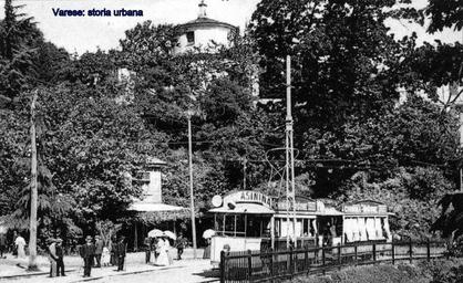 Keywords: La stazione del tram alla Prima Cappella. In alto a sinistra la chiesa dell'Immacolata Concezione (1609) dell'architetto Giuseppe Bernasconi. varese tram primacappella