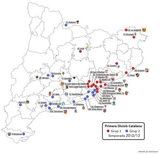 Keywords: Primeracat201213edit.png es Distribución geográfica de los equipos de Primera Catalana 2012/2013 2012-08-30 own Gutisoscar cc-zero Uploaded with UploadWizard Maps of Catalonia Association football in Catalonia