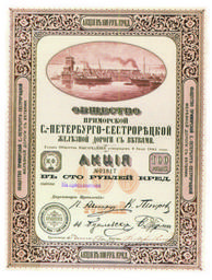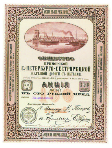 | Keywords: Primorskaya railroad share.jpg  Акция П имо ской железной до оги Primorskaya railroad share http //arkadiy-spb by ru/_private/akziya jpg 1905-1910 Primorskaya railroad PD-old Primorskaya railroad Stock certificates of rail transport companies from the Russian Empire |