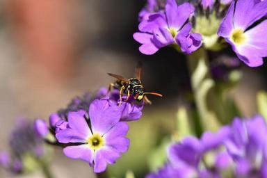 Keywords: primrose drumstick flower purple spring flower early bloomer garden nature field wasp insect animal close