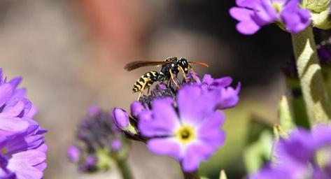 Keywords: primrose drumstick flower purple spring flower early bloomer garden nature field wasp insect animal close