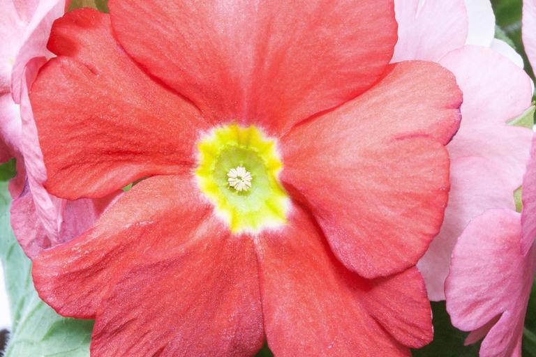 Keywords: primroses primula vulgaris hybrid salmon orange genus primrose primrose varieties flowers spring macro