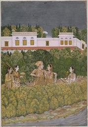 | Keywords: Prince and Ladies in a Garden, mid-18th century; Mughal.jpg en Prince and Ladies in a Garden mid-18th century; Mughal Attributed to Nidha Mal Lucknow India Watercolor and gold on paper 10 5/8 x 7 3/8 in 27 x 18 7 cm Purchase Cynthia Hazen Polsky and Leon B Polsky Fund 2001 2001 302 Not on view Last Updated October 10 2011 The scene of leisure portrayed here typifies the gracious style of later Mughal painting practiced at provincial centers such as Lucknow in the eighteenth century In this composition a prince and his consort smoke a huqqa attended by ladies in the pleasant surroundings of a walled palace garden Nidha Mal was a talented artist of the Delhi-based court of the Mughal emperor Muhammad Shah r 1719 “48 who later moved to Lucknow where he continued to paint in the refined and naturalistic Delhi style mid-18th century http //www metmuseum org/toah/works-of-art/2001 302 Nidha Mal PD-Art Uploaded with UploadWizard 18th-century Mughal miniatures People of the Mughal Empire Hookahs in art |