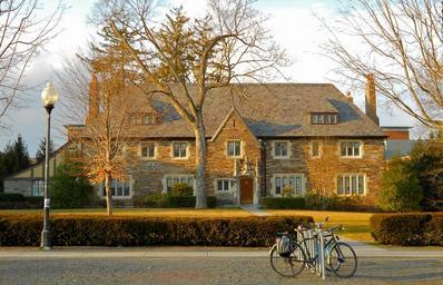 Keywords: princeton new jersey building center finance school college university trees architecture landmark fall autumn foliage nature outside bikes bicycles hedge plants sky clouds
