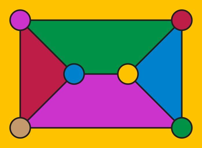 | Keywords: Prism-vf-color.svg coloring the vertices and faces of a planar graph may require six colors ” for instance in this triangular prism no three of the 11 features may take the same color Ringel conjectured in 1965 that six colors always suffice; this was proven in 1984 by Borodin This coloring problem formed the inspiration for 1-planar graphs 2013-01-20 22 38 51 own David Eppstein cc-zero Files by User David Eppstein from en wikipedia Planar graphs Prisms geometry Graph coloring; face Graph coloring; vertex |