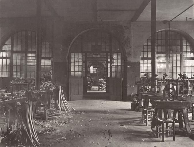 | Keywords: Prison de la Santé - Atelier de menuiserie et de decoupage.jpg Photograph Creator Hippolyte-Auguste Collard en City Police Préfecture Paris en Prison de la Santé Atelier de menuiserie et de decoupage Interior of woodshop showing benches with carpentry tools wood shavings and carved wood depicted people depicted place between 1876 1880 albumen silver 66 5 x 57 cm accession number H87 208/23 SLVIC-digitalimage 273521 H87 208/23 Album with leather covered cardboard covers 148 cardboard leaves holding 69 albumen silver print photographs on one side of leaf only Individual titles and official photographer stamped below image Title embossed on front cover with seal of the City of Paris in gilt ink ; title also on spine Label inside front cover reads Presented to the Public Library c Victoria on the eighth day of April 1881 by the Government of France Hand inscribed note on first page of album upper left Presented April 8th 1881 illegible Photographs various sizes 38 x 27 cm and smaller <br> Album was designed to show the use of photography in the solving of crimes and disasters Gift of the French Government possibly following the International Exhibition of 1880 <br> Official photographer's stamp on each page lower left some images dated 1876 and 1880 One photographer identified Hippolyte-Auguste Collard Institution State Library of Victoria object history exhibition history credit line Gift; Government of France; 1881 Information field Author Préfecture de police de Paris Service Photographique PD-100 Prison de la Santé Ville de Paris Préfecture de police Images of Paris from the State Library of Victoria |