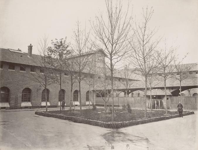 MAKE A MEME View Large Image Prison de la Santé - Préau.jpg Photograph Creator Hippolyte-Auguste Collard en City Police Préfecture Paris en Prison de la Santé Préau Courtyard with square garden bed and trees in centre men in uniforms standing nearby depicted ...