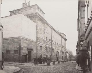 | Keywords: Prison de Sainte-Pélagie - Vue Extérieure.jpg Photograph Creator Hippolyte-Auguste Collard en City Police Préfecture Paris en Prison de Sainte-Pélagie Vue Extérieure Looking from across intersection towards brick building line of uniformed men on path in front of building another man on corner in left foreground depicted people depicted place between 1876 1880 albumen silver 66 5 x 57 cm accession number H87 208/17 SLVIC-digitalimage 273521 H87 208/17 Album with leather covered cardboard covers 148 cardboard leaves holding 69 albumen silver print photographs on one side of leaf only Individual titles and official photographer stamped below image Title embossed on front cover with seal of the City of Paris in gilt ink ; title also on spine Label inside front cover reads Presented to the Public Library c Victoria on the eighth day of April 1881 by the Government of France Hand inscribed note on first page of album upper left Presented April 8th 1881 illegible Photographs various sizes 38 x 27 cm and smaller <br> Album was designed to show the use of photography in the solving of crimes and disasters Gift of the French Government possibly following the International Exhibition of 1880 <br> Official photographer's stamp on each page lower left some images dated 1876 and 1880 One photographer identified Hippolyte-Auguste Collard Institution State Library of Victoria object history exhibition history credit line Gift; Government of France; 1881 Information field Author Préfecture de police de Paris Service Photographique PD-100 Ville de Paris Préfecture de police Images of Paris from the State Library of Victoria Prison Sainte-Pélagie |