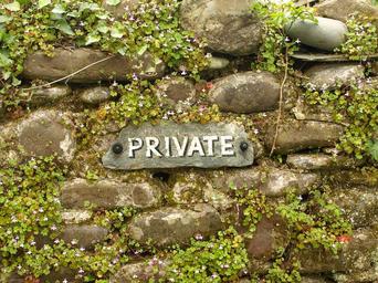 Keywords: private wall overgrown shield note sign weathered old