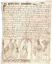 | Keywords: Privilegium imperatoris.jpg Alfonso VII of León and Castile granting land to an Abbot William bottom centre for the foundation of a Benedictine monastery Behind Alfonso right is his majordomo Count Ponce Giraldo de Cabrera bearing a sword and shield At bottom left are Alfonso's sons Sancho and Fernando http //blog metmuseum org/penandparchment/wp-content/uploads/2009/05/cat210r7_49c jpg Anonymous scribe 1142 “57 while Ponce de Cabrera was Count and Alfonso VII still living PD-Art PD-old-100 1160 Spain 50px 50px 50px Original upload log en wikipedia ftcg page en wikipedia Privilegium_imperatoris jpg wikitable - 01 05 30 November 2010 1 635 × 1 985 1 585 089 bytes Srnec w en <nowiki> Privilegium Imperatoris Imperial Privilege of the Emperor Alfonso VII of León and Castile granting land to an Abbot William bottom centre for the foundation of a Benedictine monastery Behind Alfonso right is </nowiki> Alfonso VII of Castile in miniature Sancho III of Castile in miniature Ferdinand II of León in miniature |