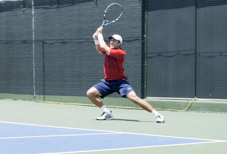 Keywords: pro tennis tennis backhand action competition fitness man athletic competitive challenge muscular finesse defense male professional sport