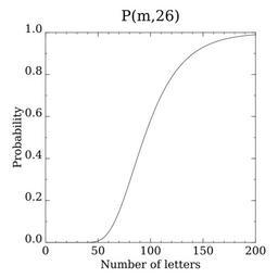Keywords: Probability that 0 ≤ m ≤ 200 random letters contain the entire alphabet.svg en A plot of <math>P m n \sum_ k 0 n -1 k n \choose k \left \frac n-k n \right m</math> for n 26 and 0 ‰¤ m ‰¤ 200 i e the probability than m uniformly distributed random letters will contain the entire 26-letter alphabet Own work by uploader computed with a Perl script given here plotted with GNU Plotutils tweaked in Inkscape Ilmari Karonen 2006-01-17 Other fields + 4 Combinatorics Functions