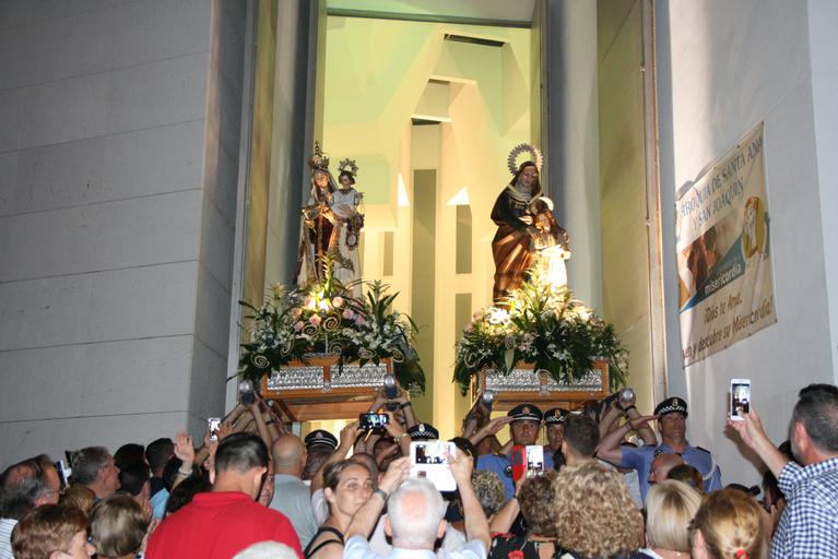 | Keywords: roquetas de mar roquetasdemar fiestas roquetas de mar fiestasroquetasdemar fiestas santa ana roquetas de mar fiestassantaanaroquetasdemar fiestas el puerto roquetas de mar fiestaselpuertoroquetasdemar procesión santa ana procesiónsantaana El 26 de julio volvió a ser un día grande para El Puerto de Roquetas de Mar. La procesión en honor a la Virgen del Carmen y Santa Ana reunió a miles de personas que arroparon a las imágenes en el recorrido por las calles del barrio. Los vecinos y visitantes vivieron la procesión con intensidad y exaltación, y los vítores a la Virgen y Santa Ana fueron constantes. Por la mañana se celebraba la Santa Misa solemne en el tercer y último día del Triduo. Por la tarde, pasadas las 18 horas, comenzaba la procesión. Las imágenes estuvieron acompañadas por la música de la Banda de Música de Loja y de la Unión Musical Roquetas de Mar. Desde la Parroquia de Santa Ana se llegaba a la Calle El Faro y después hasta la explanada del Faro de Roquetas de Mar. En este punto se llevó a cabo una de las principales tradiciones de estas fiestas, el lavado de cara a Santa Ana. Gabriel Amat, alcalde de Roquetas de Mar, hizo el lavado, así como Marta López, que fue designada en el sorteo. Juani Cruz, también por sorteo, fue la persona que portó el agua para el lavado. Después la procesión continuó en dirección al muelle pesquero bordeando el Castillo de Santa Ana para iniciar la procesión marítima hacia Aguadulce. La imagen de la Virgen del Carmen procesionó en el barco Salvador El Fortuna, mientras que la de Santa Ana lo hizo en el Rompemares. Antes de llegar a Aguadulce se lanzaron cohetes en honor a la Virgen y a Santa Ana. En el Puerto Deportivo de Aguadulce se rezó a las imágenes, y se partió de nuevo hacia el Puerto de Roquetas de Mar. En alta mar también se lanzaron flores en memoria de los pescadores. Pasadas las 21 horas la procesión volvía a tierra y recorría la zona del ferial en dirección hacia la Iglesia del Puerto. Una vez en este punto, y con la presencia de miles de personas en la plaza, se lanzaba un espectacular castillo de fuegos artificiales con el que se ponía fin a la procesión. Antes de regresar las imágenes al templo se interpretó el himno de España que sirvió como despedida. El 26 de julio volvió a ser un día grande para El Puerto de Roquetas de Mar. La procesión en honor a la Virgen del Carmen y Santa Ana reunió a miles de personas que arroparon a las imágenes en el recorrido por las calles del barrio. Los vecinos y visitantes vivieron la procesión con intensidad y exaltación, y los vítores a la Virgen y Santa Ana fueron constantes. Por la mañana se celebraba la Santa Misa solemne en el tercer y último día del Triduo. Por la tarde, pasadas las 18 horas, comenzaba la procesión. Las imágenes estuvieron acompañadas por la música de la Banda de Música de Loja y de la Unión Musical Roquetas de Mar. Desde la Parroquia de Santa Ana se llegaba a la Calle El Faro y después hasta la explanada del Faro de Roquetas de Mar. En este punto se llevó a cabo una de las principales tradiciones de estas fiestas, el lavado de cara a Santa Ana. Gabriel Amat, alcalde de Roquetas de Mar, hizo el lavado, así como Marta López, que fue designada en el sorteo. Juani Cruz, también por sorteo, fue la persona que portó el agua para el lavado. Después la procesión continuó en dirección al muelle pesquero bordeando el Castillo de Santa Ana para iniciar la procesión marítima hacia Aguadulce. La imagen de la Virgen del Carmen procesionó en el barco Salvador El Fortuna, mientras que la de Santa Ana lo hizo en el Rompemares. Antes de llegar a Aguadulce se lanzaron cohetes en honor a la Virgen y a Santa Ana. En el Puerto Deportivo de Aguadulce se rezó a las imágenes, y se partió de nuevo hacia el Puerto de Roquetas de Mar. En alta mar también se lanzaron flores en memoria de los pescadores. Pasadas las 21 horas la procesión volvía a tierra y recorría la zona del ferial en dirección hacia la Iglesia del Puerto. Una vez en este punto, y con la presencia de miles de personas en la plaza, se lanzaba un espectacular castillo de fuegos artificiales con el que se ponía fin a la procesión. Antes de regresar las imágenes al templo se interpretó el himno de España que sirvió como despedida. |