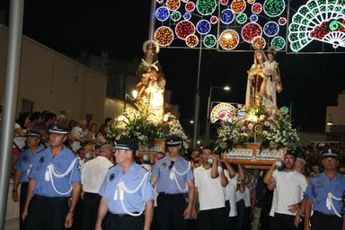 | Keywords: roquetas de mar roquetasdemar fiestas roquetas de mar fiestasroquetasdemar fiestas santa ana roquetas de mar fiestassantaanaroquetasdemar fiestas el puerto roquetas de mar fiestaselpuertoroquetasdemar procesión santa ana procesiónsantaana El 26 de julio volvió a ser un día grande para El Puerto de Roquetas de Mar. La procesión en honor a la Virgen del Carmen y Santa Ana reunió a miles de personas que arroparon a las imágenes en el recorrido por las calles del barrio. Los vecinos y visitantes vivieron la procesión con intensidad y exaltación, y los vítores a la Virgen y Santa Ana fueron constantes. Por la mañana se celebraba la Santa Misa solemne en el tercer y último día del Triduo. Por la tarde, pasadas las 18 horas, comenzaba la procesión. Las imágenes estuvieron acompañadas por la música de la Banda de Música de Loja y de la Unión Musical Roquetas de Mar. Desde la Parroquia de Santa Ana se llegaba a la Calle El Faro y después hasta la explanada del Faro de Roquetas de Mar. En este punto se llevó a cabo una de las principales tradiciones de estas fiestas, el lavado de cara a Santa Ana. Gabriel Amat, alcalde de Roquetas de Mar, hizo el lavado, así como Marta López, que fue designada en el sorteo. Juani Cruz, también por sorteo, fue la persona que portó el agua para el lavado. Después la procesión continuó en dirección al muelle pesquero bordeando el Castillo de Santa Ana para iniciar la procesión marítima hacia Aguadulce. La imagen de la Virgen del Carmen procesionó en el barco Salvador El Fortuna, mientras que la de Santa Ana lo hizo en el Rompemares. Antes de llegar a Aguadulce se lanzaron cohetes en honor a la Virgen y a Santa Ana. En el Puerto Deportivo de Aguadulce se rezó a las imágenes, y se partió de nuevo hacia el Puerto de Roquetas de Mar. En alta mar también se lanzaron flores en memoria de los pescadores. Pasadas las 21 horas la procesión volvía a tierra y recorría la zona del ferial en dirección hacia la Iglesia del Puerto. Una vez en este punto, y con la presencia de miles de personas en la plaza, se lanzaba un espectacular castillo de fuegos artificiales con el que se ponía fin a la procesión. Antes de regresar las imágenes al templo se interpretó el himno de España que sirvió como despedida. El 26 de julio volvió a ser un día grande para El Puerto de Roquetas de Mar. La procesión en honor a la Virgen del Carmen y Santa Ana reunió a miles de personas que arroparon a las imágenes en el recorrido por las calles del barrio. Los vecinos y visitantes vivieron la procesión con intensidad y exaltación, y los vítores a la Virgen y Santa Ana fueron constantes. Por la mañana se celebraba la Santa Misa solemne en el tercer y último día del Triduo. Por la tarde, pasadas las 18 horas, comenzaba la procesión. Las imágenes estuvieron acompañadas por la música de la Banda de Música de Loja y de la Unión Musical Roquetas de Mar. Desde la Parroquia de Santa Ana se llegaba a la Calle El Faro y después hasta la explanada del Faro de Roquetas de Mar. En este punto se llevó a cabo una de las principales tradiciones de estas fiestas, el lavado de cara a Santa Ana. Gabriel Amat, alcalde de Roquetas de Mar, hizo el lavado, así como Marta López, que fue designada en el sorteo. Juani Cruz, también por sorteo, fue la persona que portó el agua para el lavado. Después la procesión continuó en dirección al muelle pesquero bordeando el Castillo de Santa Ana para iniciar la procesión marítima hacia Aguadulce. La imagen de la Virgen del Carmen procesionó en el barco Salvador El Fortuna, mientras que la de Santa Ana lo hizo en el Rompemares. Antes de llegar a Aguadulce se lanzaron cohetes en honor a la Virgen y a Santa Ana. En el Puerto Deportivo de Aguadulce se rezó a las imágenes, y se partió de nuevo hacia el Puerto de Roquetas de Mar. En alta mar también se lanzaron flores en memoria de los pescadores. Pasadas las 21 horas la procesión volvía a tierra y recorría la zona del ferial en dirección hacia la Iglesia del Puerto. Una vez en este punto, y con la presencia de miles de personas en la plaza, se lanzaba un espectacular castillo de fuegos artificiales con el que se ponía fin a la procesión. Antes de regresar las imágenes al templo se interpretó el himno de España que sirvió como despedida. |