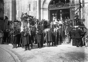 | Keywords: Procession a Lisbonne (Ch.-Fl. 111-1675).jpg see below Institution George Eastman House http //www geh org/ar/chus/portugal/m197501111675_ful html http //www geh org/ar/strip05/m197501111675 jpg 1910-05-26 š 🛈 Charles Chusseau-Flaviens see below Information_field 1st uploaded as the 24 631 868<sup>th</sup> file in Wikimedia Commons Information_field GEH record <blockquote> Chusseau-Flaviens Ch French active 1890s-1910s 75 0111 1675 </blockquote><small style color C00; > to be completed </small> Lic PD-old Black and white photographs of Portugal Photographs of Portugal by Charles Chusseau-Flaviens Corpus Christi celebrations in Lisbon 1910 Photographs taken on 1910-05-26 Main portal of Sé de Lisboa Photographs in the George Eastman House Collection Embrasures in Portugal Grilles architecture in Portugal Sé de Lisboa - Fuschini restoration campaign 1902-1911 Street lights in Lisbon |