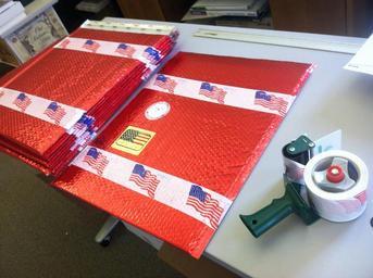 | Keywords: indoor Outer envelope for the proclamation is a 19x22" bright red bubblepak with American Flag packing tape as an accent. Outer envelope for the proclamation is a 19x22" bright red bubblepak with American Flag packing tape as an accent. |