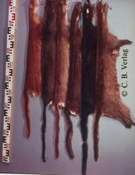 | Keywords: Profelis aurata (African golden cat) fur skins 2.jpg Felis herpailurus yagouaroundi Fur skin collection Bundes-Pelzfachschule Frankfurt/Main Germany Felis herpailurus yagouaroundi Aus der Fellsammlung der ehemaligen Bundes-Pelzfachschule heute Frankfurter Schule für Bekleidung und Mode Frankfurt/Main Gesammelt unter Studiendirektor Ludwig Brauser Derzeit eingelagert in den Räumen des Senckenbergmuseums Frankfurt/Main <br /> Die hier eingestellten Aufnahmen sind lagerungsbedingt unterschiedlich stark farbverändert und deshalb dazu nur sehr bedingt aussagefähig <br /> Own Mickey Bohnacker Presse-Fotograf Frankfurt/Main ca 1978 Die freie Nutzung erfolgt mit zusätzlichem Einverständnis des C B -Verlag Carl Boldt Peter Geselius Puma yagouaroundi |