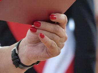 Keywords: professional hand documents the hand manicure hands closeup body woman business red varnish deep red