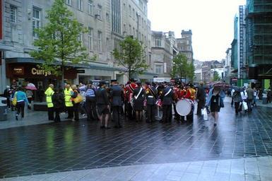 | Keywords: band church street churchstreet liverpool march project 365 project365 rain unlucky outdoor road We were in town today doing a little shopping for a birthday present. When we got to mobile phone corner just past the horse's bollocks we saw this sight. Actually, that location is worth an explanation. It's the junction between Church Street and Parker Street in Liverpool. On this corner you'll find a 3 store, an Orange shop, a t-mobile shop, a phones4u, and not one but two Carphone Warehouses - hence mobile phone corner. It's also just down from the junction of Church Street and Hanover Street where there used to stand a magnificent statue of an extremely well endowed stallion - hence the horse's bollocks. Anyway, today is the Lord Mayor's Parade, so I'm guessing this military band were getting ready to march, but unfortunately fell victim to rather inclement weather. Still, the rain has stopped now so I hope things are going well for them. Yet again, it's a crappy mobile shot - shame on me. We were in town today doing a little shopping for a birthday present. When we got to mobile phone corner just past the horse's bollocks we saw this sight. Actually, that location is worth an explanation. It's the junction between Church Street and Parker Street in Liverpool. On this corner you'll find a 3 store, an Orange shop, a t-mobile shop, a phones4u, and not one but two Carphone Warehouses - hence mobile phone corner. It's also just down from the junction of Church Street and Hanover Street where there used to stand a magnificent statue of an extremely well endowed stallion - hence the horse's bollocks. Anyway, today is the Lord Mayor's Parade, so I'm guessing this military band were getting ready to march, but unfortunately fell victim to rather inclement weather. Still, the rain has stopped now so I hope things are going well for them. Yet again, it's a crappy mobile shot - shame on me. |