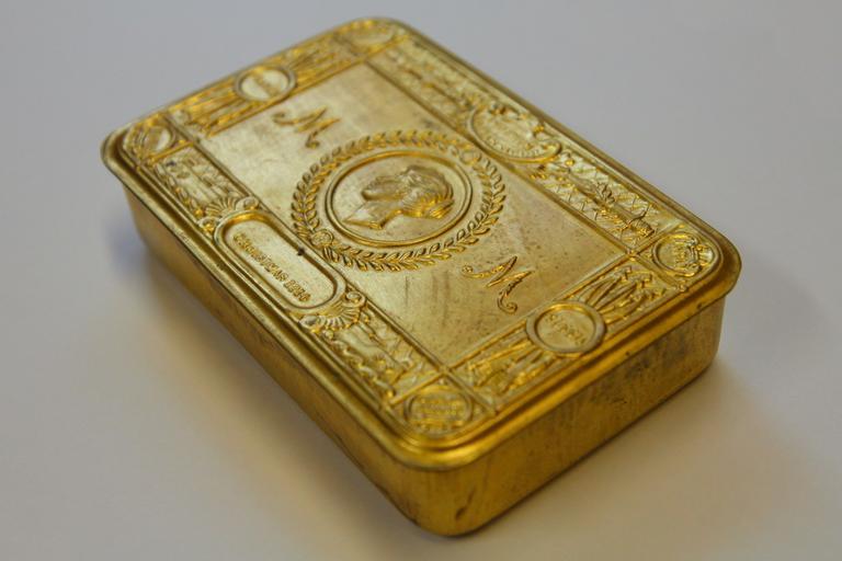 | Keywords: project 365 project365 christmas tin christmastin ww1 great war greatwar generous gift generousgift princess mary tin princessmarytin wartime gift wartimegift gift to soldiers gifttosoldiers indoor white background Isn't this fabulous! Sometimes I get to shoot some interesting things, and today one of the youngsters brought in a 1914 Princess Mary Christmas Gift Tin. These were funded by subscription from a grateful public, and were the brainchild of Princess Mary, then 17. They were sent to military personnel on active service. This one was in beautifully prisine condition, and was complete with the .303 bullet cartridge pencil and greeting card (in this case, the New Year's card, showing it was distributed after Chrismas) from Princess Mary. A lovely, lovely thing. Isn't this fabulous! Sometimes I get to shoot some interesting things, and today one of the youngsters brought in a 1914 Princess Mary Christmas Gift Tin. These were funded by subscription from a grateful public, and were the brainchild of Princess Mary, then 17. They were sent to military personnel on active service. This one was in beautifully prisine condition, and was complete with the .303 bullet cartridge pencil and greeting card (in this case, the New Year's card, showing it was distributed after Chrismas) from Princess Mary. A lovely, lovely thing. |