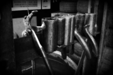 | Keywords: black and white blackandwhite processedtohellandgone project 365 project365 tyre shop tyreshop tyre tools tyretools blackandwhite monochrome indoor black and white I don't think I mentioned my New Year's Eve nightmare of being stuck in Asda's car park in the lashing down rain with a flat tyre on an alloy wheel that was seized onto the hub. Ah well, no need now, but it meant a trip to Priory Tyres this morning. As expected, they had to order in the tyre but were able to get it same day. These tools were hanging just inside the door, and I thought they looked interesting. I don't think I mentioned my New Year's Eve nightmare of being stuck in Asda's car park in the lashing down rain with a flat tyre on an alloy wheel that was seized onto the hub. Ah well, no need now, but it meant a trip to Priory Tyres this morning. As expected, they had to order in the tyre but were able to get it same day. These tools were hanging just inside the door, and I thought they looked interesting. |