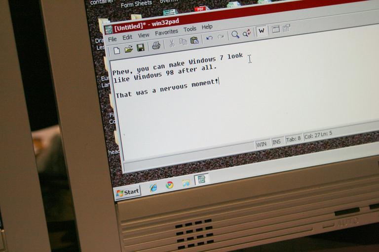 Keywords: project 365 project365 retro windows 7 windows7 i liked 98 iliked98 configuration relief upgrading document text I'm sure that Keith will be shocked and stunned to learn that I've upgraded my operating system in work. I've jumped from XP to Windows 7, and I was pretty much forced by XP's reluctance to address my RAM and make the most of the multi core CPU. The installation wasn't too bad, but I did have some nervous moments wading through all the pointless glass and aero effects. I needn't have worried. With an hour or two of carefully directed industry and a dedicated mind you can make Windows 7 look just like Windows 98! Phew, that was a close call! :) I'm sure that Keith will be shocked and stunned to learn that I've upgraded my operating system in work. I've jumped from XP to Windows 7, and I was pretty much forced by XP's reluctance to address my RAM and make the most of the multi core CPU. The installation wasn't too bad, but I did have some nervous moments wading through all the pointless glass and aero effects. I needn't have worried. With an hour or two of carefully directed industry and a dedicated mind you can make Windows 7 look just like Windows 98! Phew, that was a close call! :)