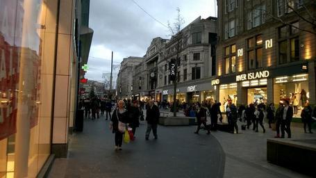 | Keywords: church street churchstreet project 365 project365 retail shopping road city architecture outdoor Not too many stories to tell today, though I did get a fair amount done. This is a fairly ropey shot of Church Street, what used to be the main shopping centre of Liverpool. The nature of shopping streets is that they do change a lot, and certainly there's a lot I wouldn't recognise from this scene if I saw it in the fifties. More interestingly, it's seen huge changes even in my adult life. Time for a memory test, and you're all welcome to confirm or correct me. I think River Island used to be WH Smith, with steps going down just inside the door. Further along...Next...did that used to be C&A? Then in between C&A and Burtons I think was HMV which was on the first floor, next to a Burger King. Up where Primark is...was that Littlewoods? Too much change... Not too many stories to tell today, though I did get a fair amount done. This is a fairly ropey shot of Church Street, what used to be the main shopping centre of Liverpool. The nature of shopping streets is that they do change a lot, and certainly there's a lot I wouldn't recognise from this scene if I saw it in the fifties. More interestingly, it's seen huge changes even in my adult life. Time for a memory test, and you're all welcome to confirm or correct me. I think River Island used to be WH Smith, with steps going down just inside the door. Further along...Next...did that used to be C&A? Then in between C&A and Burtons I think was HMV which was on the first floor, next to a Burger King. Up where Primark is...was that Littlewoods? Too much change... |