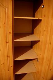 | Keywords: mdf project 365 project365 shelves wardrobe wood wood joinery Laura decided that whilst the triple wardrobe was great, it would actually be more use if the end section was shelves rather than a hanging section. Cue my activity today, which inolved a sheet of 9mm MDF, a workmate and a jigsaw. Ordinarily this would be a reasonably normal Sunday afternoon activity, but those who understand the full magnitude of my DIY ineptitude would probably see the funny side. Nevertheless it seems to work, and the shelves are actually equidistant - the angle makes them look otherwise. All good fun. :) Laura decided that whilst the triple wardrobe was great, it would actually be more use if the end section was shelves rather than a hanging section. Cue my activity today, which inolved a sheet of 9mm MDF, a workmate and a jigsaw. Ordinarily this would be a reasonably normal Sunday afternoon activity, but those who understand the full magnitude of my DIY ineptitude would probably see the funny side. Nevertheless it seems to work, and the shelves are actually equidistant - the angle makes them look otherwise. All good fun. :) |
