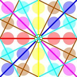 | Keywords: Projectivisation F5P^1.svg 6 color coordinates equation - <font color FFFF00> </font> 0 1 x 0 - <font color FF0000> </font> 1 0 y 0 - <font color 0000FF> </font> 1 1 y x - <font color FF00FF>\</font> 1 1 y x - <font color AA5500>×</font> 1 2 y 2x - <font color 00FFFF>×</font> 1 2 y 2x finite field F<sub>5</sub> ru П оективная п ямая F<sub>5</sub>P<sup>1</sup> над конечным полем F<sub>5</sub> fr La droite projective F<sub>5</sub>P<sup>1</sup> sur un corps fini F<sub>5</sub> Own Incnis Mrsi 2009-07-26 public domain see projective line over a finite field Example of using in design <nowiki> Projectivisation F5P 1 svg 150px </nowiki> - Projectivisation F5P 1 svg 150px Finite fields Geometric patterns |