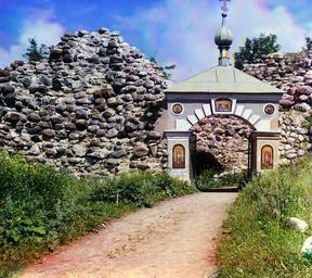 | Keywords: Prokudin 20893v Old Ladoga 1909.jpg en Entrance into the yard of the Church of Saint George Staraia Ladoga Russian Empire ru Ста ая Ладога Вход в ог аду це кви св Гео гия 1909 prokc 20893 Creator Sergey Prokudin-Gorsky digital rendering by Юкатан other versions Custom license marker 2014 11 23 PD-Russia PD-1923 Uploaded with UploadWizard Photo of Saint Petersburg Governorate by Sergey Prokudin-Gorsky Ruins in Russia Gates in Russia Staraya Ladoga Fortress | ||||